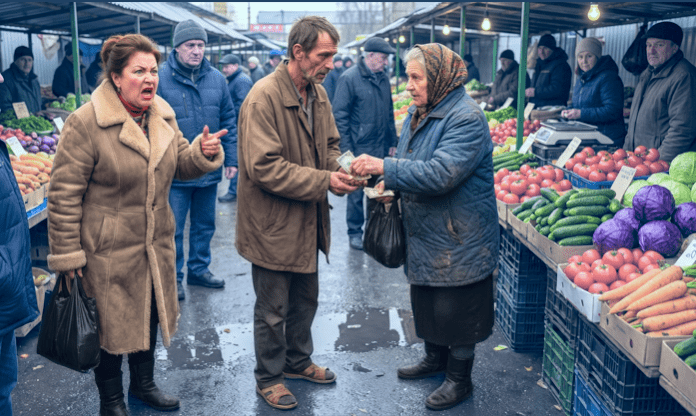 Рынок замер. Тишина стояла такая, что слышно было, как где-то капает вода. Галина, стоявшая с открытым ртом, выронила банку сметаны. Белое пятно расплылось по грязному асфальту, но она даже не посмотрела вниз.