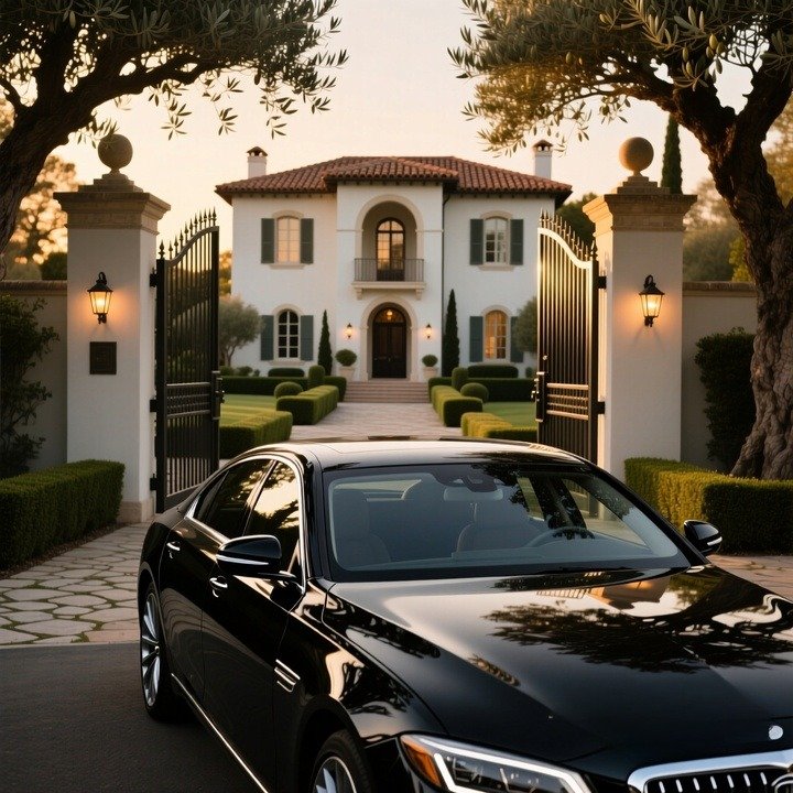 Она улыбнулась и пригнула голову, чтобы увидеть в лобовое стекло красивый дом через открывающиеся ворота.
