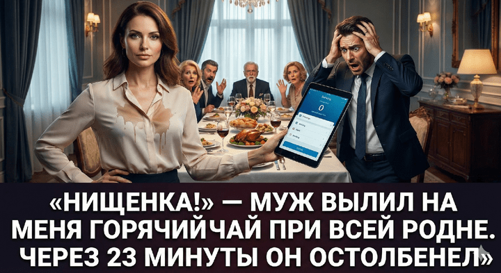 Нищенка!» — муж вылил на меня горячий чай при всей родне. Через 23 минуты он остолбенел